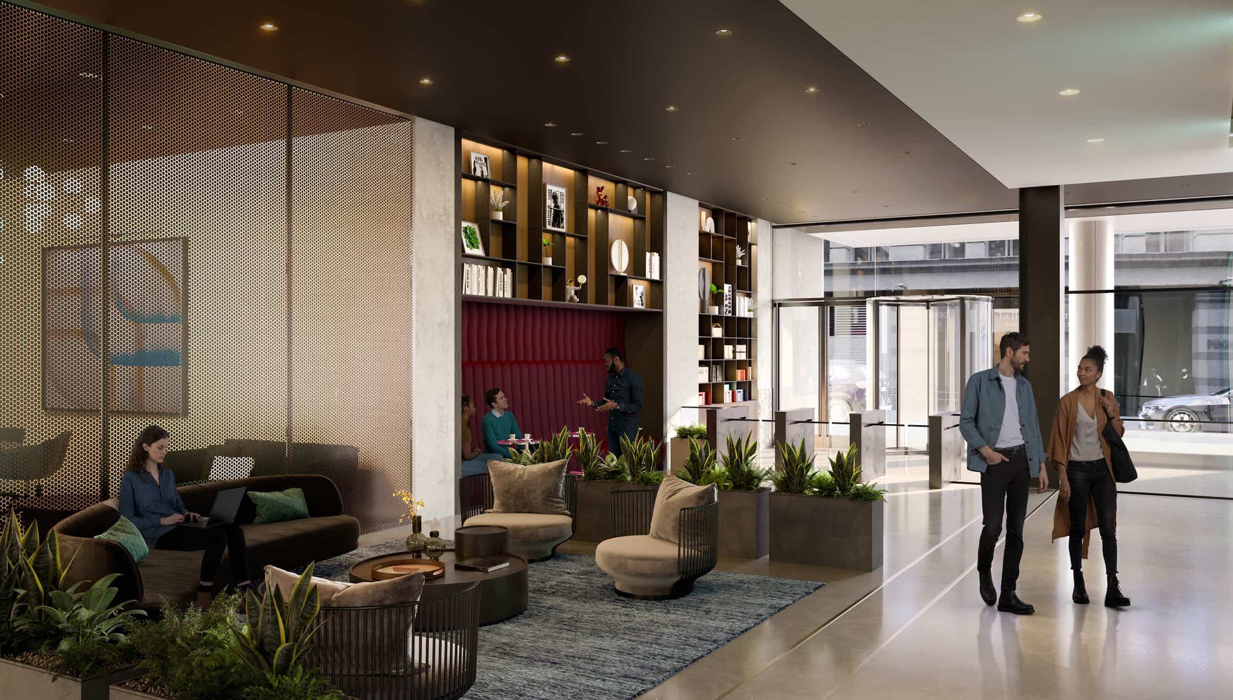 The lobby and ground floor common areas are being completely transformed to create welcoming, curated spaces that accommodate events, group meetings, focused work, or simply hanging out, with dedicated staff to anticipate employee needs throughout the day.
